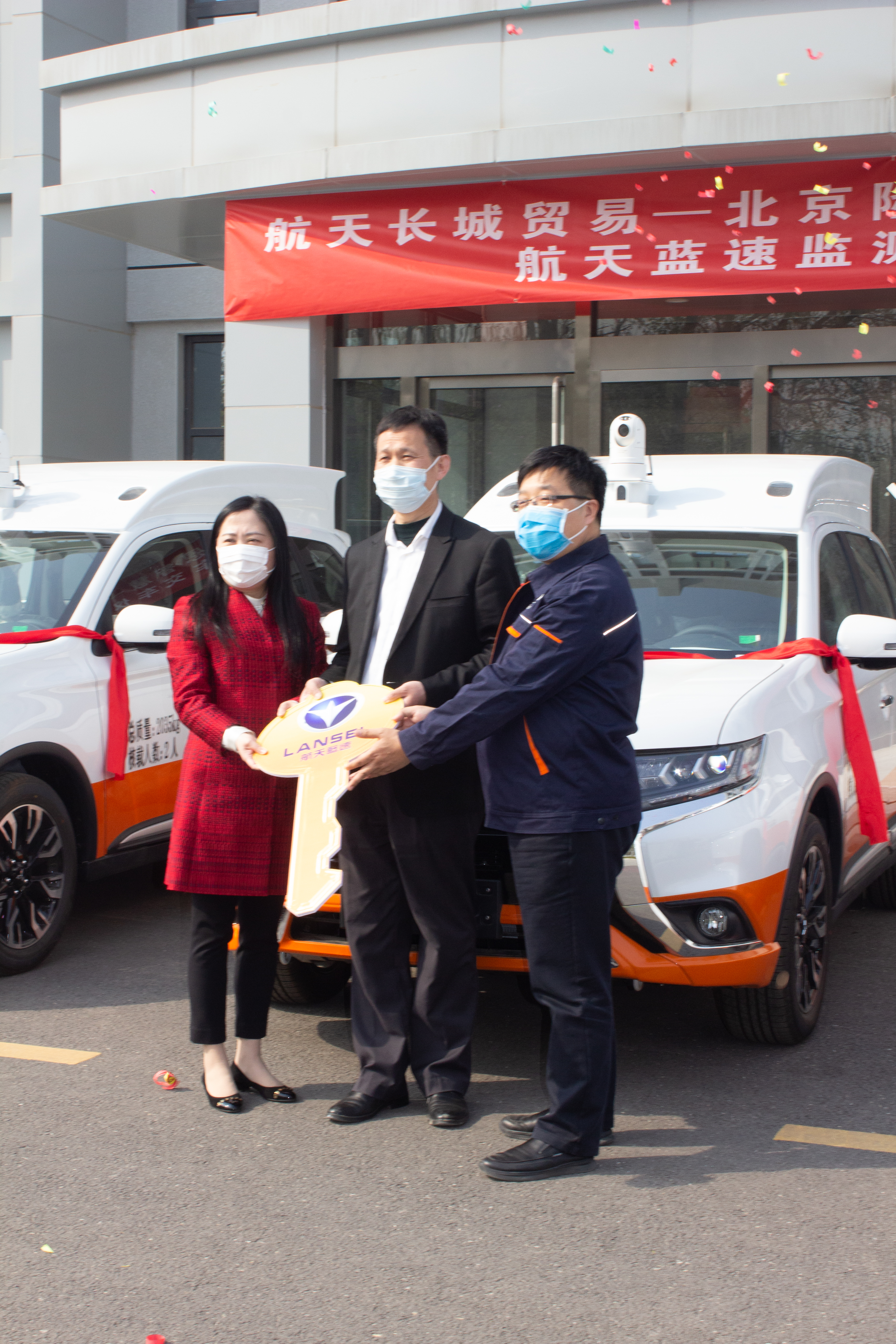 2020年4月7日,风和日丽、万物生机勃勃,在这春暖花开的季节里,航天新长征电动汽车技术有限公司(以下简称:航天新长征公司)的商务车项目,在生产和销售人员的共同不懈努力,长子营产业园区迎来了首批共计11台蓝速牌监测车交车仪式。