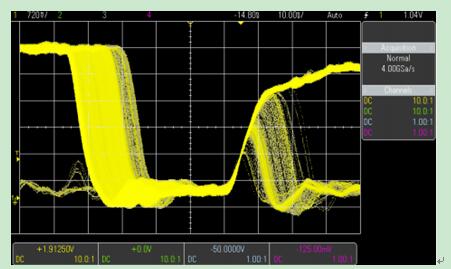 - 对设计执行调试和故障诊断。示波器可以查看信号细节—它具有极高的波形更新速率,能够显示波形细节(如毛刺和异常),并且能对设计中的目标区域进行探测。