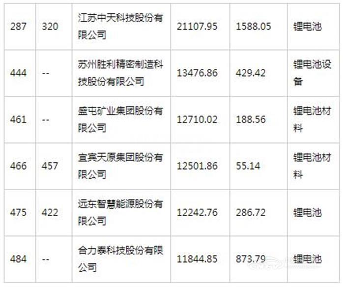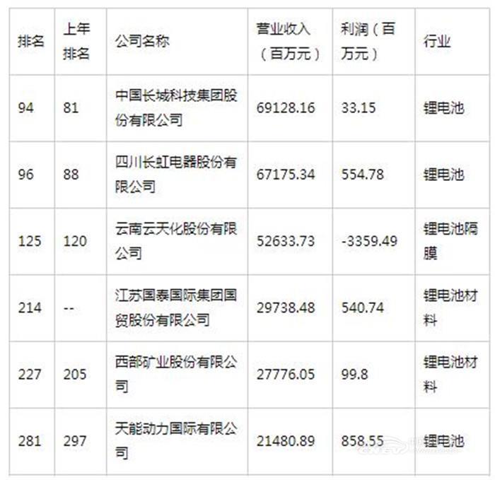 12家锂电池相关企业入选中国500强
