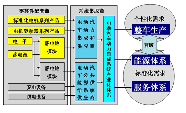 以建立符合三项基本要求和五项具体要求的蓄电池储能电源系统,和电动汽车动力系统集成关键技术和产业化体系为切入点。首先在产业联盟内实现突破“相互隔离,重复分散格局”。这也是实现项目基本目标的关键。