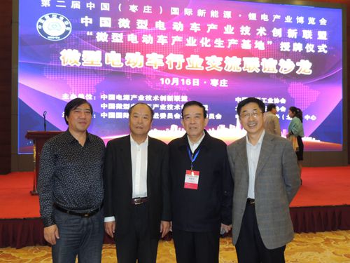 另外,中国微型电动车产业技术创新联盟成立大会暨第一届理事会在山东枣庄召开。中国科学院院士、中国化学会顾问、钱逸泰教授出席,枣庄市副市长王新宁致辞,北京大学其鲁教授、北京汽车行业协会副秘书长徐华、中国科学院电工技术研究所陈永翀教授在主席台就座。在会议上,中国电源工业协会理事长、工信部电子信息产品司助理巡视员季国平当选为联盟理事长,有关领导在会议上向到会的副理事长及秘书长、副秘书长颁发了证书。
