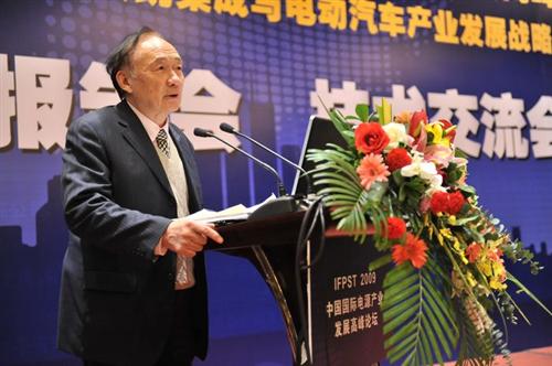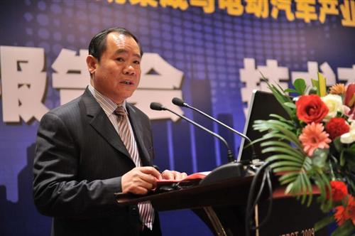 会议由中国电子商会电源专业委员会、北京电源行业协会秘书长孙京伟、原中国航天集团梅岭化工厂总工程师隗玉林两位主持。工业和信息化部副司长、中国电源产业技术创新联盟理事长、中国电子商会电源专业委员会理事长王秉科首先做了题为《要依靠科技创新力促进新能源汽车产业化发展》的致辞。他说,目前新能源汽车产业化面临的三个瓶颈:技术、市场、配套设施。中国新能源汽车技术目前在电池电力驱动系统效率、电池系统集成技术、快速充电材料、大规模生产工艺设计、电池使用寿命、生产过程质量控制等方面与国外仍有差距,部分关键零部件技术未获突破,仍然依赖进口,成本控制待加强。
