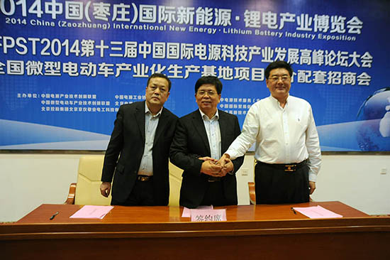 当日下午,还举行了全国微型电动车产业化生产基地项目推介招商大会,中国微型电动车产业技术创新联盟与北控集团北京京仪敬业电工科技有限公司、枣庄高新区三方签署合作协议,同意联合在枣庄高新区筹建年产能10万辆的“微型电动车产业化生产示范基地”。石家庄京石新能源汽车有限公司、北京利尔德电气投资有限公司也分别与北控集团北京京仪敬业电工科技有限公司、中国微型电动车产业技术创新联盟签署合作协议,分别筹建年产能10万辆的“微型电动车产业化生产示范基地”。
