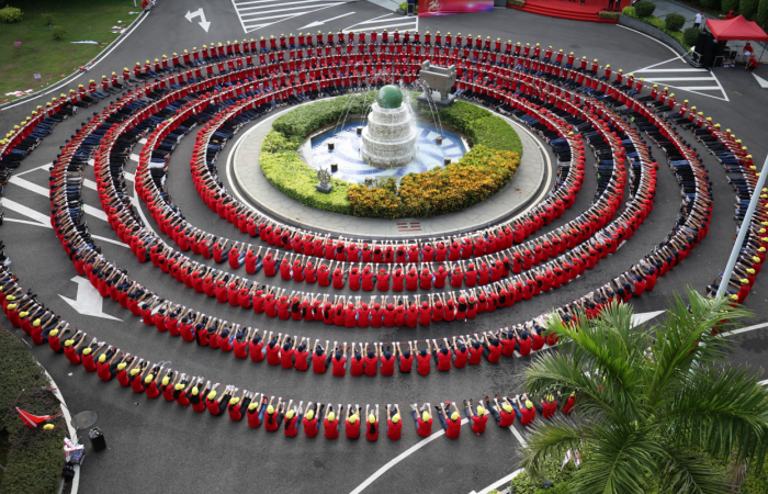 一枝独放不是春,百花齐放春满园。作为当天庆典活动的最后一个环节,全体参会科华员工集体带来独具特色的活动表演。虽然来自不同的部门,从事着不同的岗位,但同在科华大家庭,每一个科华人气质中的精神风貌是一致的。大家团结在一起,共同完成“科华30周年元素方阵表演”和828个“动力环”转圈挑战,用热情感染身边的伙伴,用自己的诚心和力量,为科华恒盛30周年诞辰献上一份珍贵的贺礼。