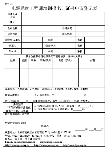 1) 填写《电源系统工程师培训报名、证书申请表》。