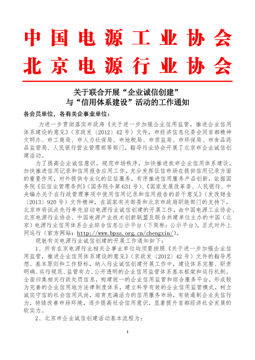 现就有关电源行业诚信创建的开展工作通知如下: