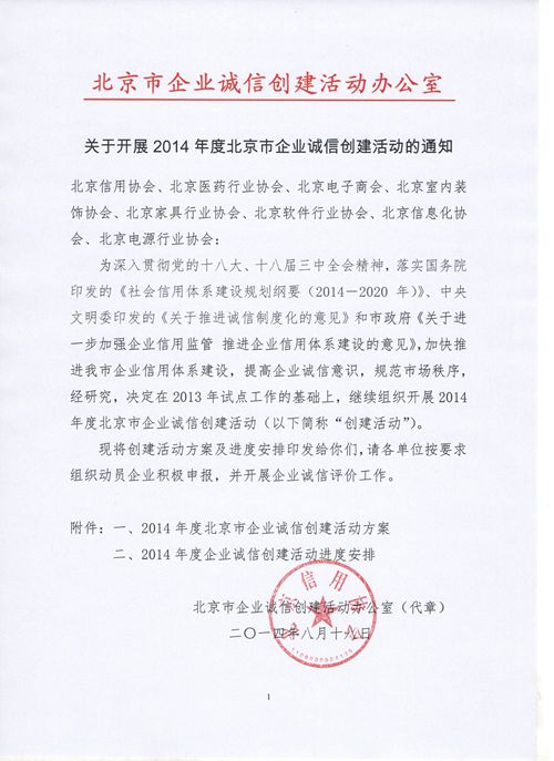 附件:关于开展2014年度北京市企业诚信创建活动”的通知