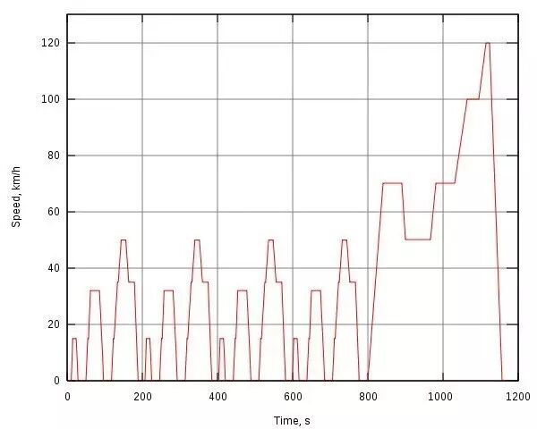 它将油耗测试的工况条件分为两部分——市区和市郊,并认定市区30%、市郊70%。整个测试由四个市区工况小循环、一个郊区工况和一个40秒的怠速时间组成,共计1220秒。