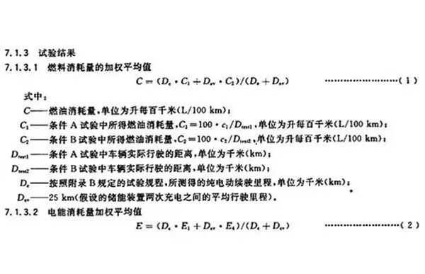 根据工信部《轻型混合动力电动汽车能量消耗试验方法》,混动车型油耗的计算公式为:C=(De•C1+Dav•C2)/(De+Dav)。